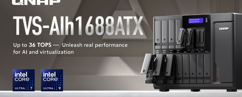 Tajpej, Tajwan, listopada 19, 2025 – QNAP® Systems, Inc., wiodący innowator w dziedzinie rozwiązań obliczeniowych, sieciowych i pamięci masowej, zaprezentował dziś TVS-AIh1688ATX, serwer NAS klasy korporacyjnej z rozwiązaniami AI, który integruje najnowsze procesory Intel® Core™ Ultra i jednostkę przetwarzania neuronowego (NPU), zapewniając do 36 TOPS całkowitej wydajności AI. Zaprojektowany z myślą o analizie obrazu/wideo z wykorzystaniem AI, wirtualizacji, przetwarzaniu multimediów i tworzeniu kopii zapasowych na dużą skalę, TVS-AIh1688ATX oferuje 12 zatok na dyski twarde SATA i 4 gniazda na dyski SSD U.2 NVMe/SATA, a także obsługuje architekturę wysokiej dostępności (HA), Thunderbolt™ 5 i rozbudowę sieci 100GbE, co czyni go potężną platformą pamięci masowej AI dla przedsiębiorstw gotowych na przyszłość.